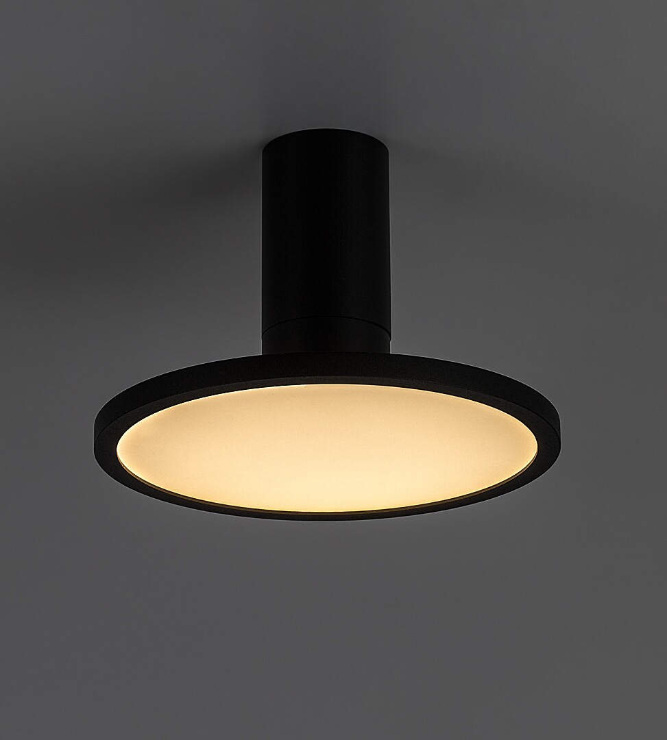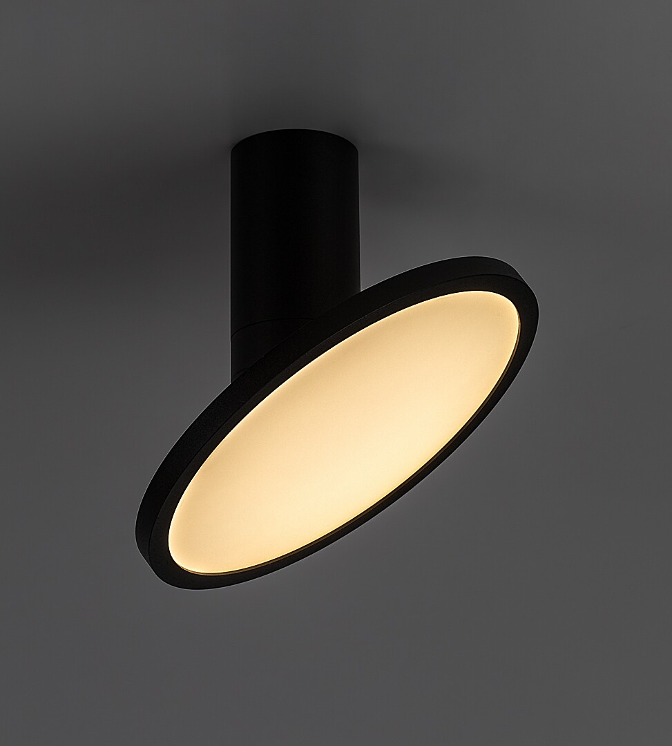 Rabalux Ovidia surface-mounted ceiling lamp is ideal for those who prioritise functionality over design. This technical-style lamp is fully made of metal in black, and it is complemented by a white lampshade. The cylindrical decorative base is connected to a horizontal disc-shaped lamp head, which can be tilted thanks to the ball joint, so that the light of the lamp can be directed as required in the room. The ceiling light has a built-in LED light source that radiates a warm white light. The minimalist design makes this model easy to integrate into most modern homes. We recommend it primarily for the living room, bedroom or workroom. Due to LED technology, the ceiling light is made attractive by energy-efficient operation and a long life-span.