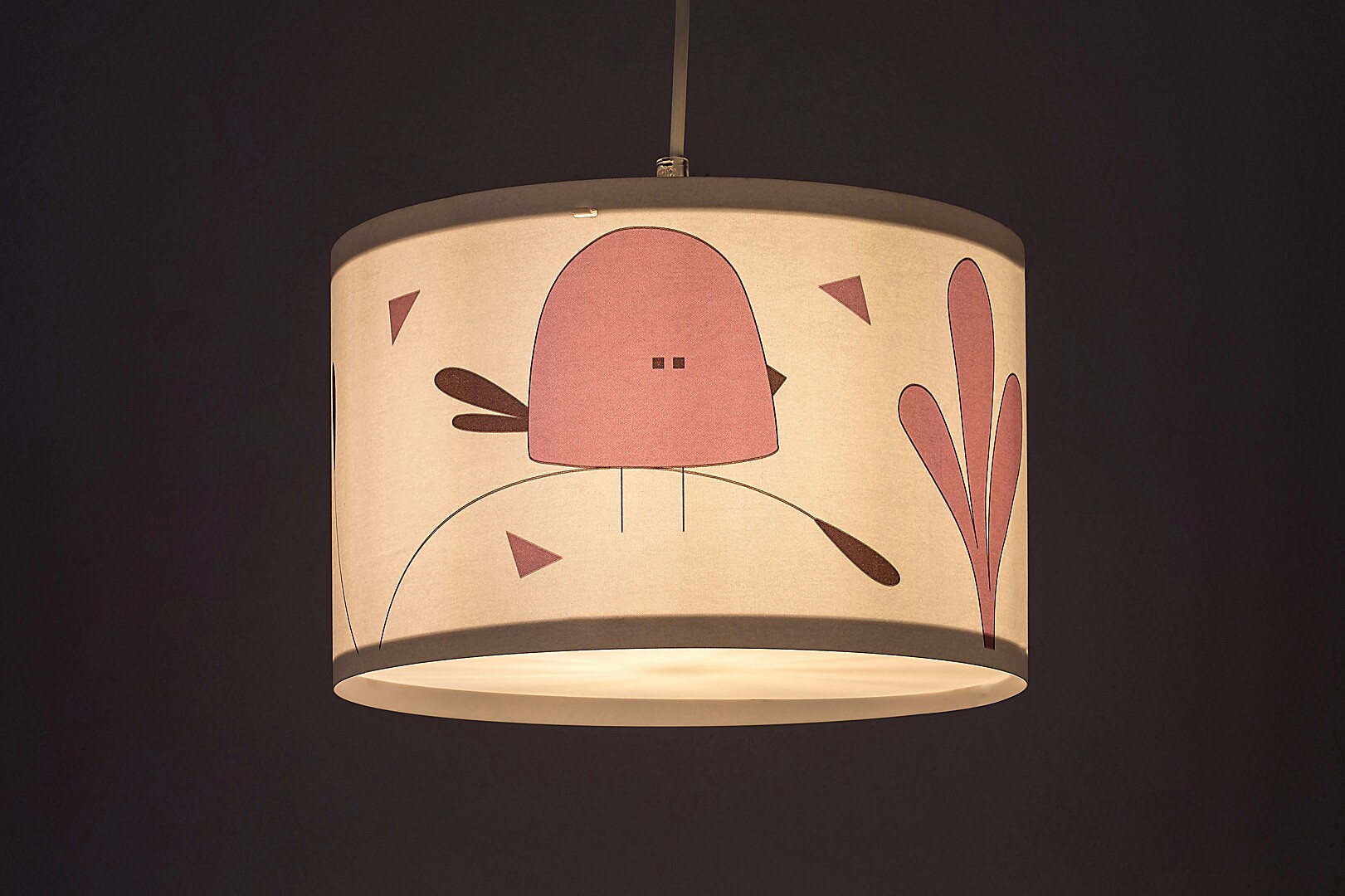 Rabalux Fowly children’s pendant lamp is a self-designed model by Rabalux. It is ideal for those who want to make their children's room even more inviting with cute, cheerful motifs. The pendant lamp is made in white with a plastic fixture and a fabric lampshade. The lampshade is cylindrical, open at the bottom and decorated with a charming purple stylized bird motif. The pendant can be fixed to the ceiling by means of a small cylindrical decorative base. It can be used with a single light bulb with a power of up to 40 W. Socket type is E27. If you wish to enhance the cosy, intimate atmosphere, choose a bulb emitting a warm white light. The children’s room pendant is supplied without a light source.