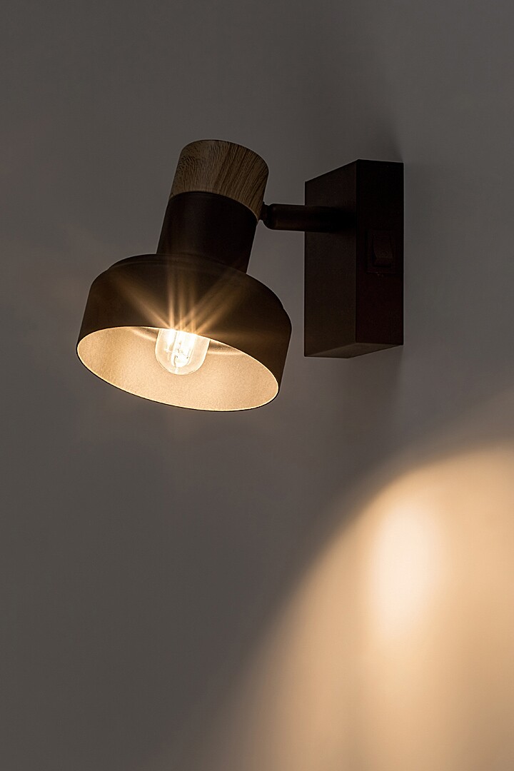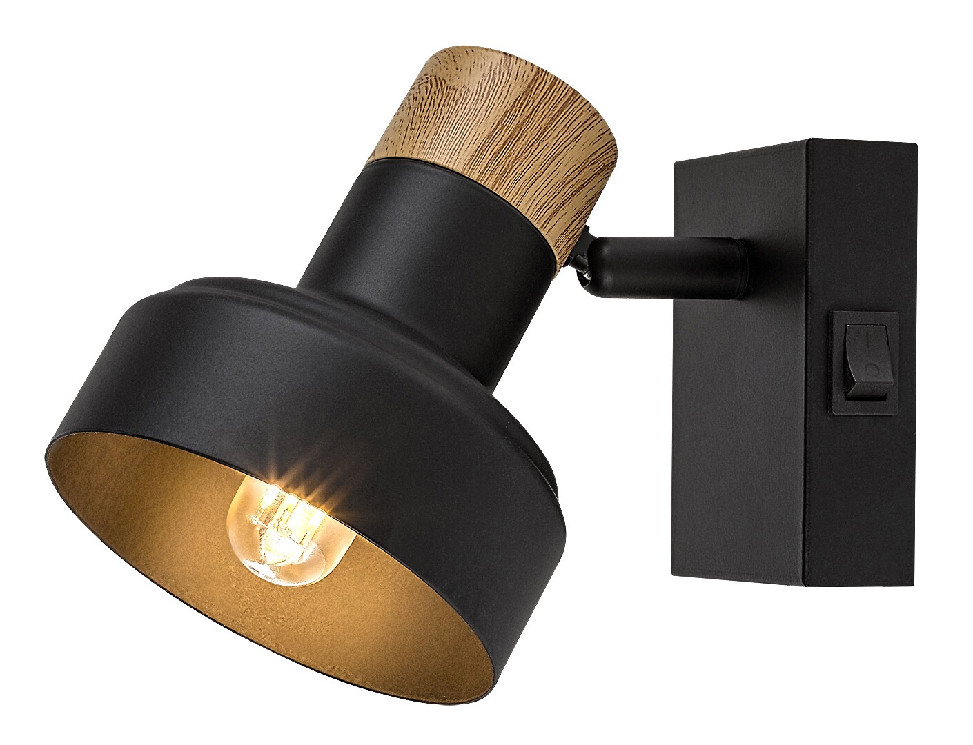 Rabalux Saskia wall spotlight is primarily recommended to the lovers of the nordic style. This wall-mounted model is made of metal and wood in black and oak. The elegant dark tone of the fixture and decorative base is only broken by the oak cap, adding a touch of nature to the lamp’s design. The inside of the lampshade is gold, which harmonises well with the natural shade of the wood. The spotlight is fixed to the wall by a rectangular upright decorative base with a rocker switch on the side. The practical lamp head can be rotated so that the light can always be directed to suit your needs. This model is the ideal choice for the living room, bedroom or workroom. It can be used with a single light bulb with a power of up to 15 W. Socket type is E14. The spot lamp is supplied without a light source.
