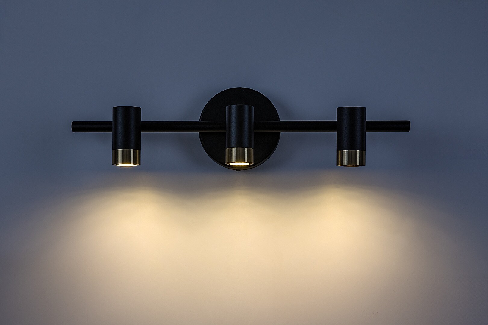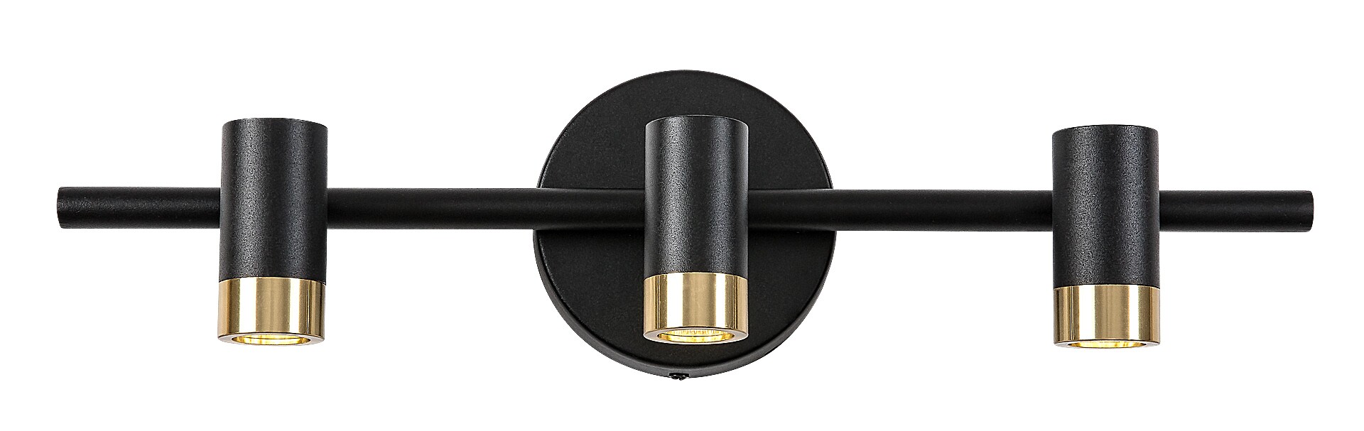 Rabalux Kadir 3-bulb wall light is recommended to those looking for a model that combines clean design with elegance. This LED lamp is conceived in the spirit of industrial style in black and gold, with a cylindrical fixture and transparent plastic lampshades. The decorative base is round in shape, black in colour and has a long horizontal bar attached to it. It holds the three downward-facing, symmetrically positioned lamp heads. The wall light is equipped with a switch and has a built-in LED light source that emits a natural white light. As this model is protected against the intrusion of solid particles with a diameter of 1 mm or more and against water splashing from any direction, it is ideal not only for the living room but also for the bathroom. Due to the LED technology, it is characterised by energy-efficient operation and a long lifespan.