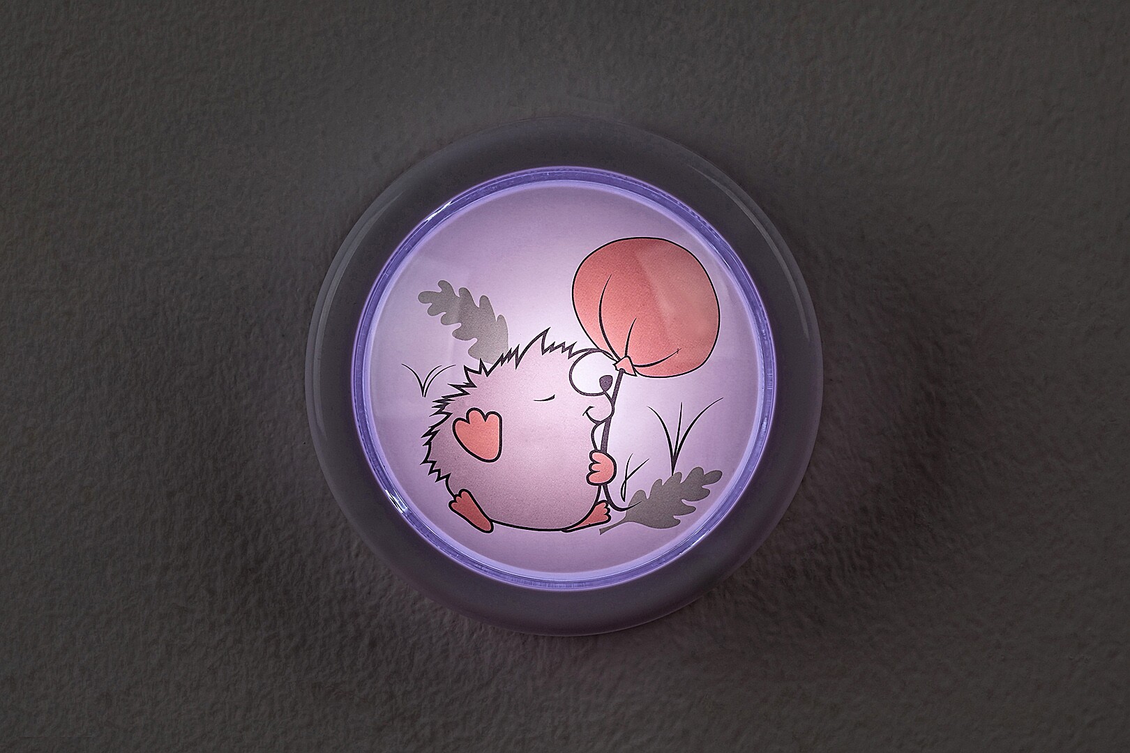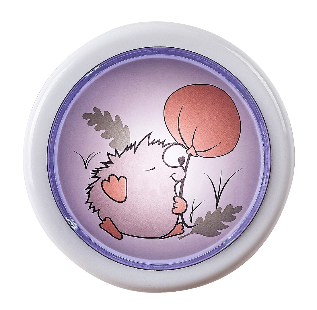 Rabalux Hedgy pushlight is a self-designed model by Rabalux. We recommend it for anyone looking for an easy-to-use and at the same time decorative nightlight for their children's room. The lamp is round in shape, fully made of plastic and decorated with a fairy hedgehog and balloon motif on a white background. It features a built-in LED light source with an outstanding life-span. It illuminates with a cold white light, making it easy to navigate around the room if something wakes your little one at night. The nightlight is easily switched on and off by simply pressing the lampshade, so there's no need to fumble around in the dark for the switch. The children's lamp can be used with two AA batteries. The children’s room pushlight is supplied without batteries.