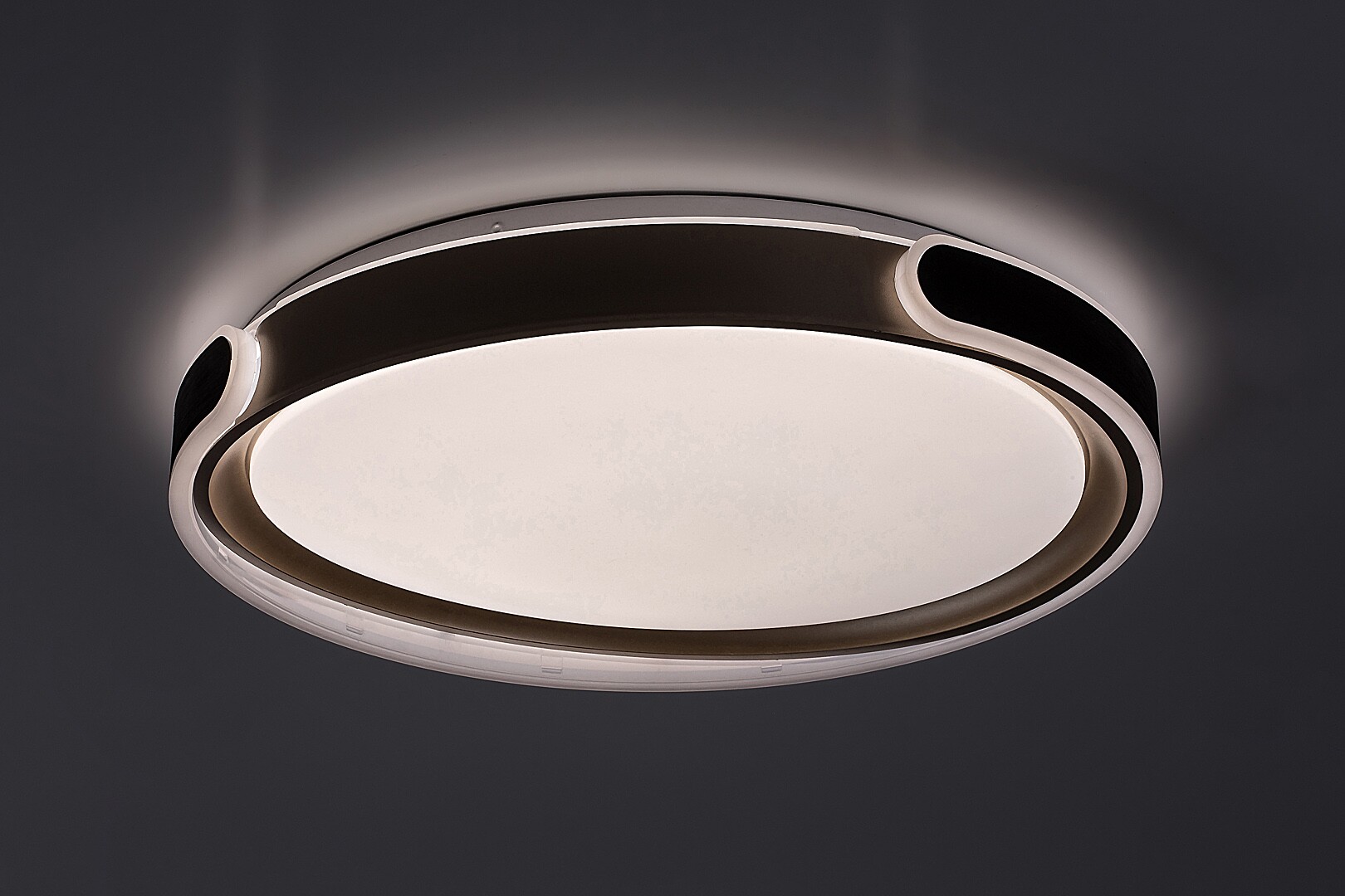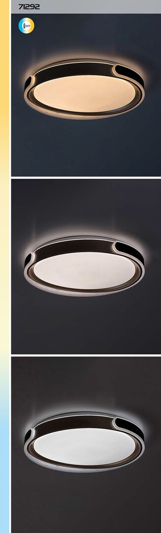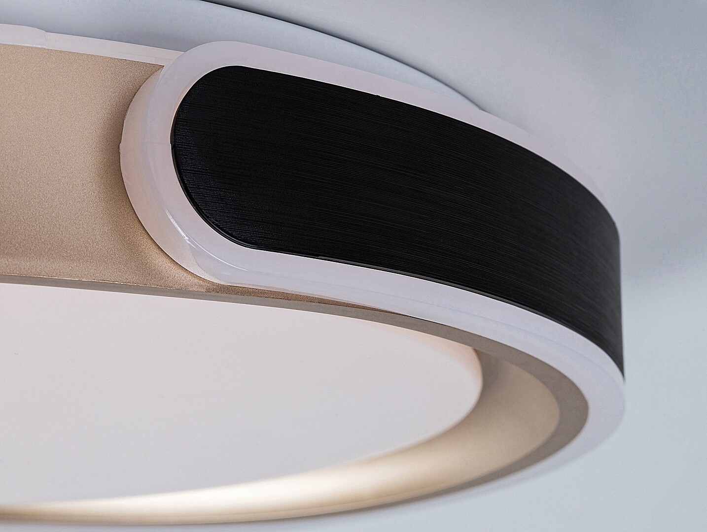 Rabalux Jindri ceiling light is the ideal choice for those who are looking for a model with great luminous intensity and smart features. The lamp has a round shape and a large diameter, and comes in an elegant black and gold colour combination. The fixture is composed of metal, while the lampshade is made of white plastic. This elegant ceiling light can easily fit into most modern home interiors. Its great luminous intensity makes it ideal for spacious living rooms, bedrooms or workrooms. It has a built-in LED light source with variable colour temperature. In addition, the brightness of the lamp can be adjusted and memory and timer functions are available. All smart functions can be controlled by remote control. Thanks to LED technology, this model is characterised by energy-efficient operation and a long life-span.