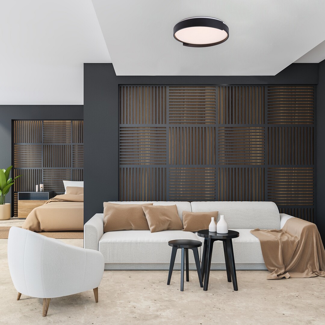 Rabalux Laleh ceiling light is recommended to those who prioritise functionality when choosing a lamp. This modern lamp combines a clean design with a range of smart features. It has a built-in LED light source with sufficient luminous intensity to illuminate a larger room. Also, LED technology ensures energy-efficient operation and a long life-span. Both the colour temperature and brightness of the lamp can be adjusted, and it also features memory, timer and nightlight functions. All smart features can be operated by remote control. The ceiling lamp is made of metal with a round shape in black, with a white plastic lampshade. The interesting feature of the design is the altering width of the fixture ring. The smart lamp is the ideal choice for modern living rooms, bedrooms and workrooms.