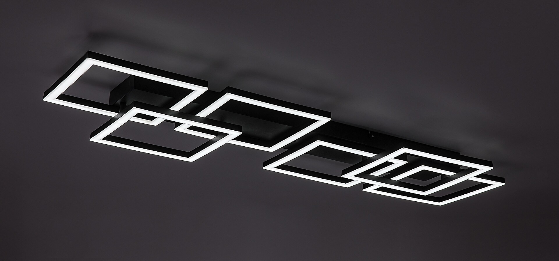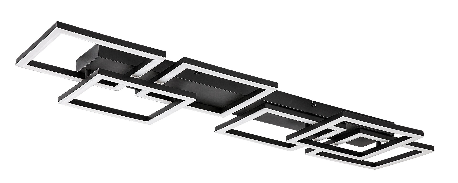 Rabalux Fatma ceiling light is the ideal choice for those who are looking for a modern and spectacular smart lamp with outstanding luminous intensity. This model is made of metal in black with a white plastic lampshade. It is made up of square elements intersecting at several points and can be fixed to the ceiling by means of a long square decorative base. It has a built-in LED light source, the colour temperature of which can be adjusted by remote control or a wall switch. It also has adjustable brightness along with memory, timer and nightlight functions, all operated by remote control. Its outstanding luminous intensity makes the ceiling lamp perfect also for more spacious rooms. It is ideal for the living room, dining room or bedroom. Due to LED technology, it is characterised by energy-efficient operation and a long life-span.