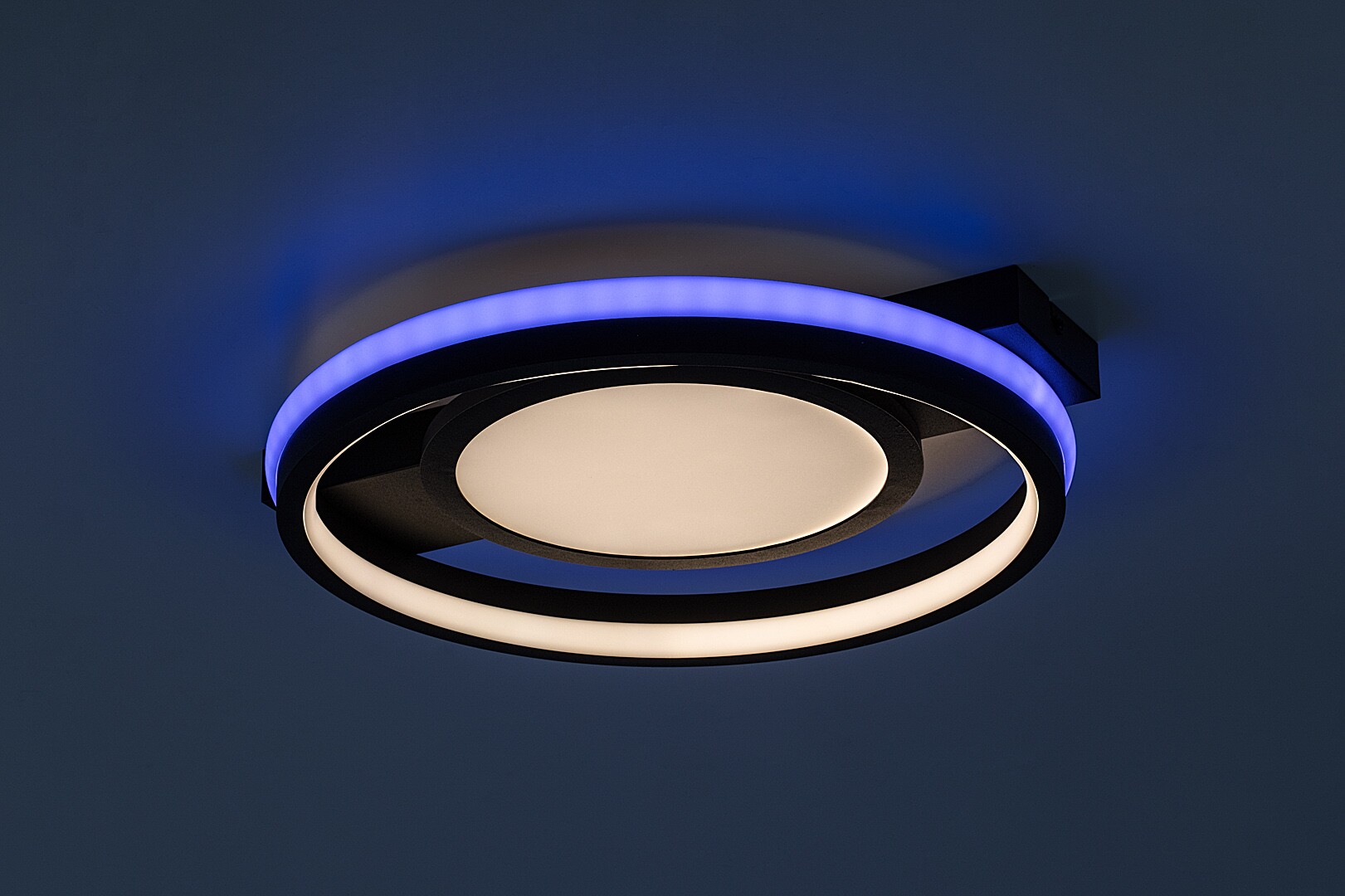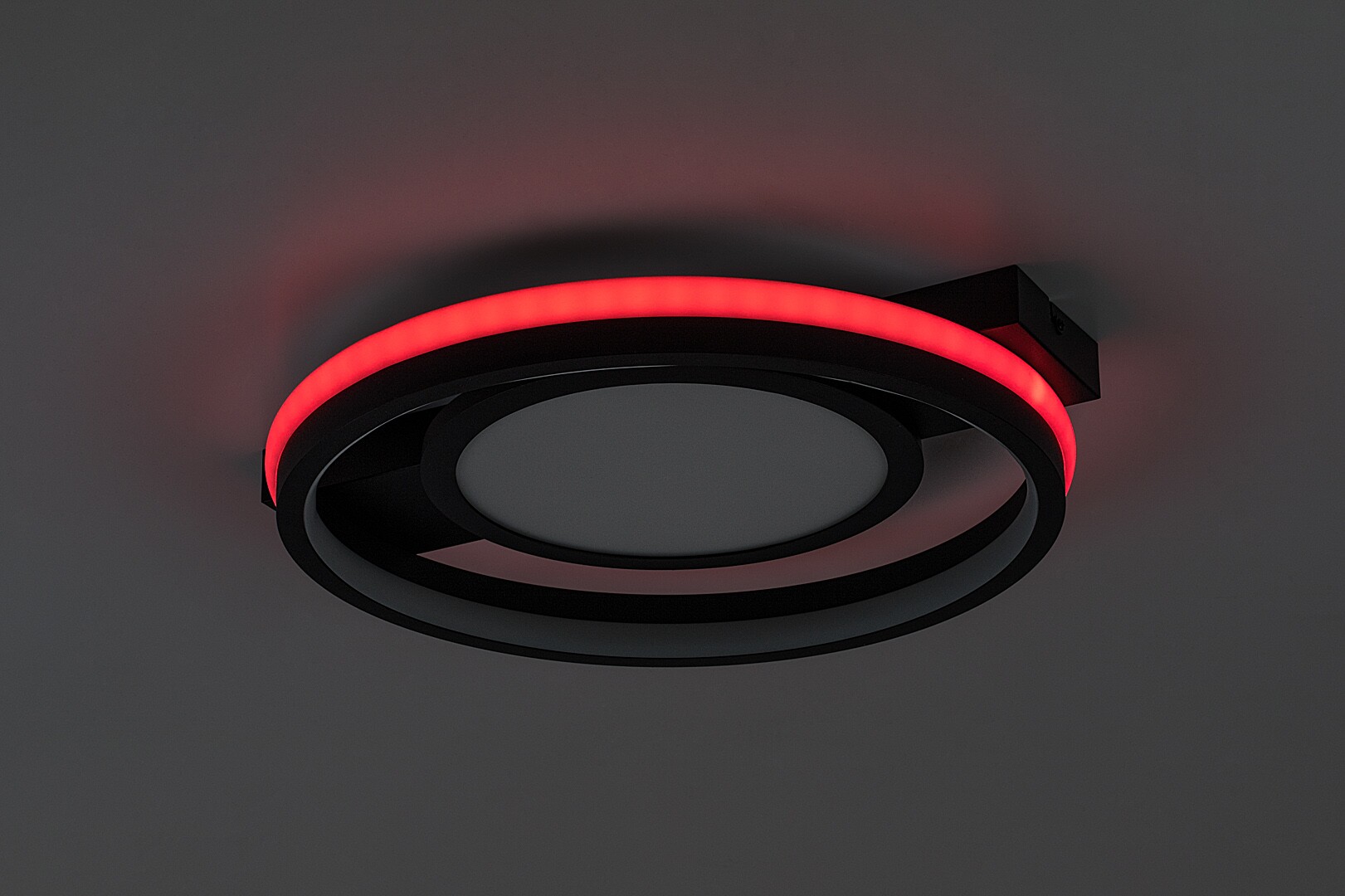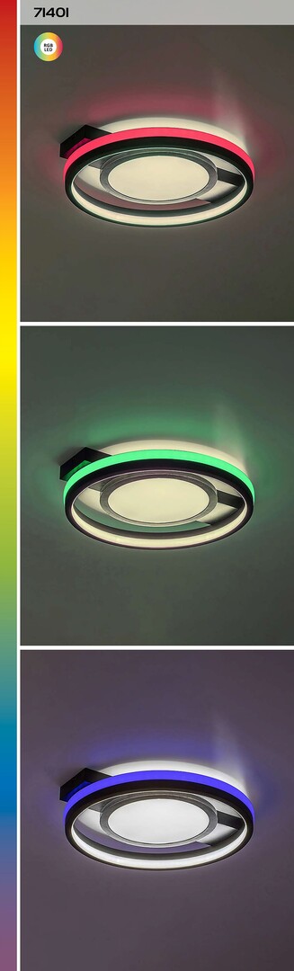 Rabalux Shirin ceiling light is the ideal choice for those who are looking for a smart lamp with extensive functionality and a modern look. This model is made of metal in black with a white plastic lampshade and round shapes. The decorative base is elongated and rectangular. The lamp has a built-in LED light source, the colour temperature of which can be adjusted by remote control or a wall switch. It is also capable of RGB lighting, which is highlighted by the band around the outer edge of the fixture. This part can be switched separately, too. The ceiling lamp is supplied with a remote control to adjust brightness and operate the memory function. Due to the integrated LED technology, this model is characterised by energy-efficient operation and a long life-span. We recommend it primarily for the living room, dining room or bedroom.