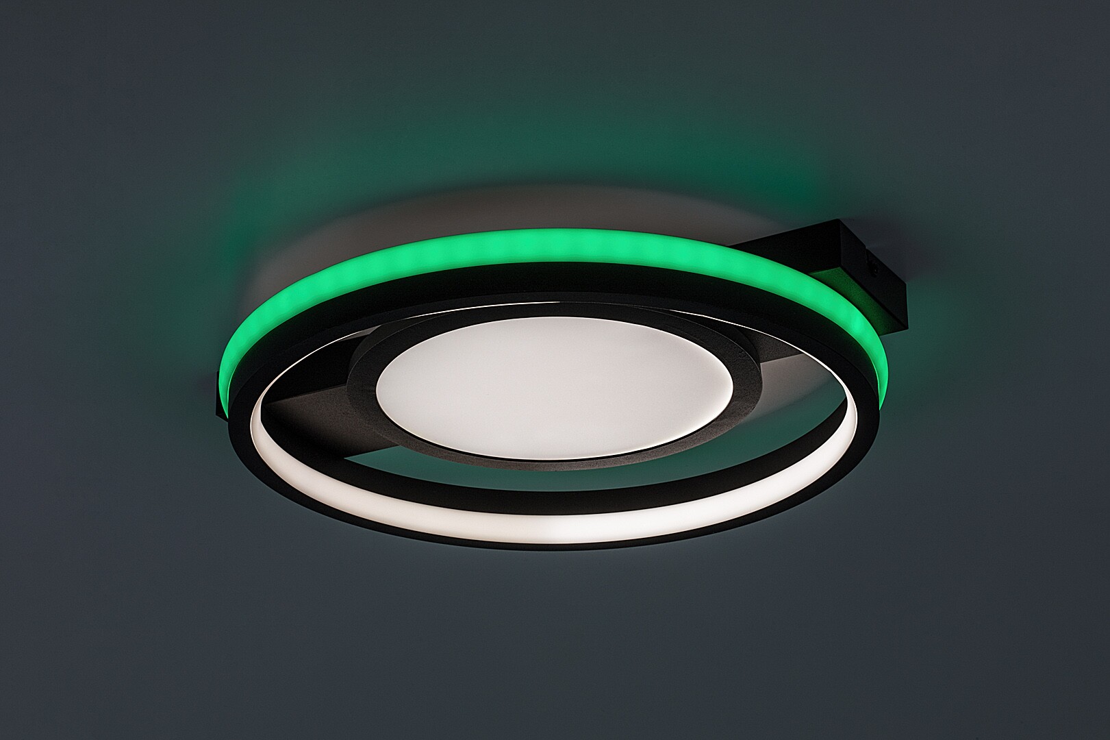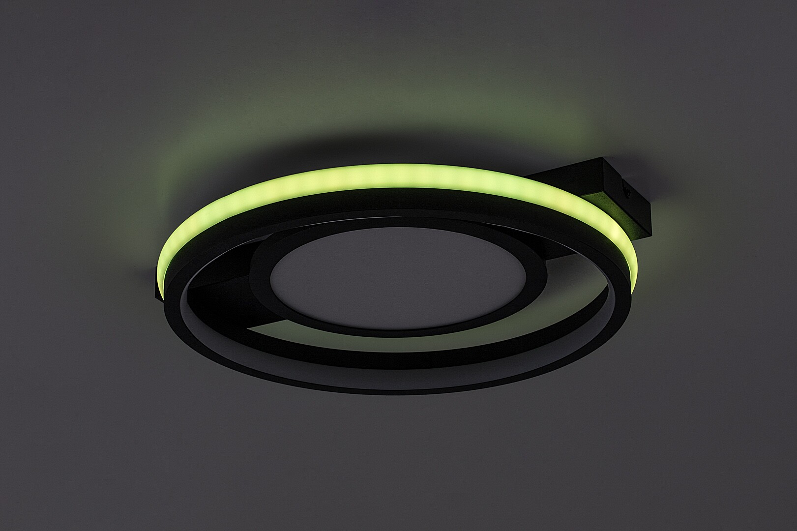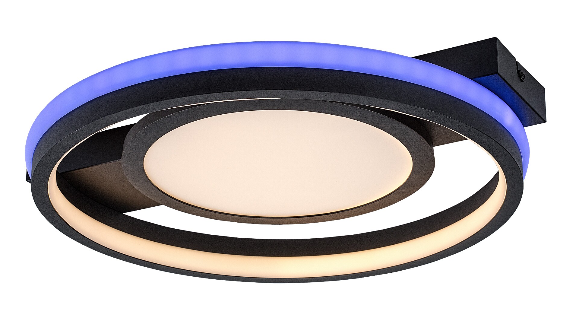 Rabalux Shirin ceiling light is the ideal choice for those who are looking for a smart lamp with extensive functionality and a modern look. This model is made of metal in black with a white plastic lampshade and round shapes. The decorative base is elongated and rectangular. The lamp has a built-in LED light source, the colour temperature of which can be adjusted by remote control or a wall switch. It is also capable of RGB lighting, which is highlighted by the band around the outer edge of the fixture. This part can be switched separately, too. The ceiling lamp is supplied with a remote control to adjust brightness and operate the memory function. Due to the integrated LED technology, this model is characterised by energy-efficient operation and a long life-span. We recommend it primarily for the living room, dining room or bedroom.