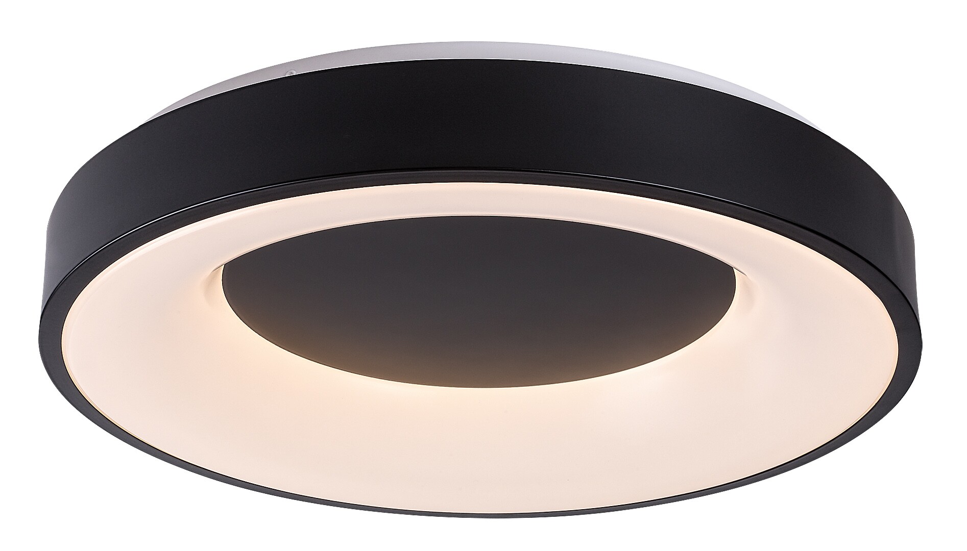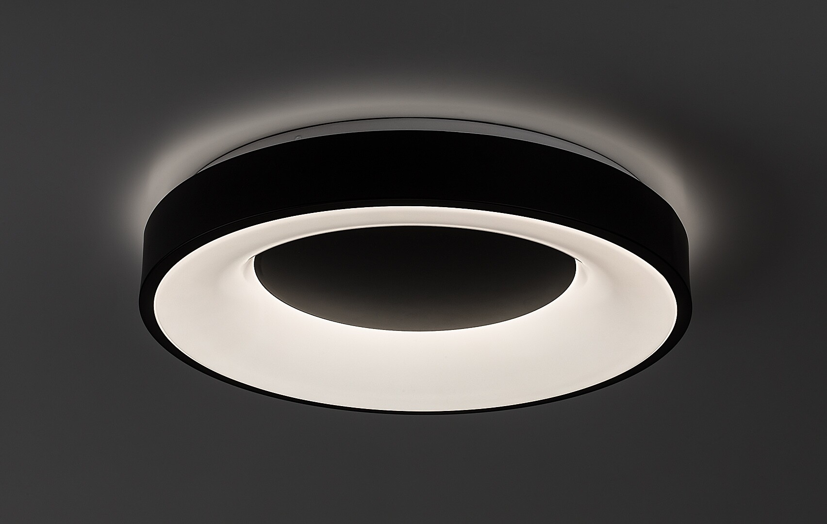 The minimal-style, high-brightness Ceilo ceiling light will be a great choice in your living room, bedroom or study. The round, black and white lamp boasts a number of great features: it is dimmable, i.e. its brightness can be changed as desired with the help of a remote control, and its colour temperature can also be adjusted between 3000-6500K using a wall switch or a remote control. That means this ceiling lamp can glow with warm, natural or cold white light, depending on your choice. Made of metal with a plastic lampshade, the Ceilo has a timer, a nightlight and a backlight function as well as a memory function that can be controlled via a wall switch or a remote control. The built-in LED lightsource of the ceiling light has a power of 38W, a luminous flux of 3,200 lumens and a life-span of 30,000 hours. The Ceilo has a diameter of 480mm, an installation diameter of 450mm and a distance from the ceiling of only 80mm.