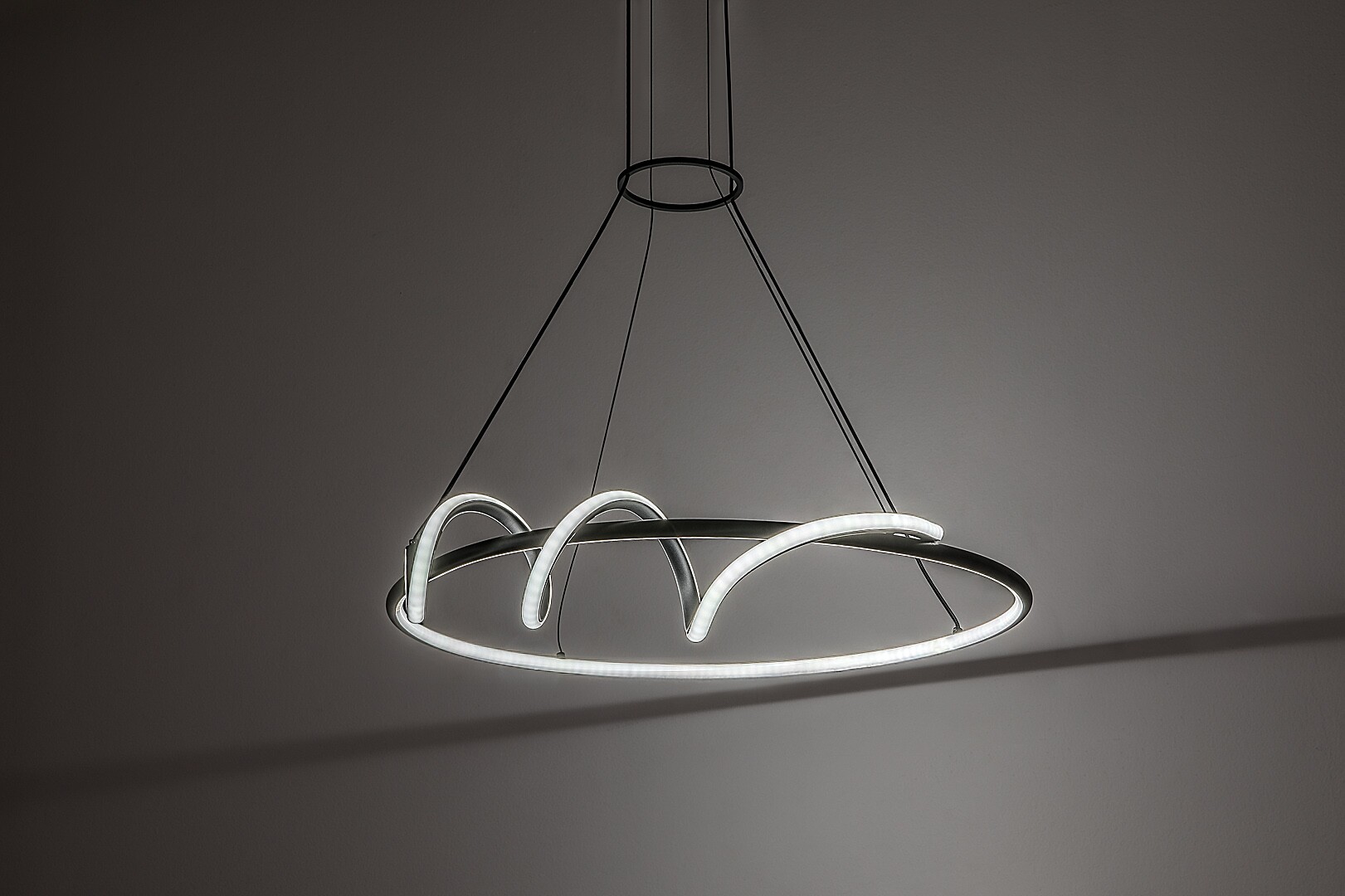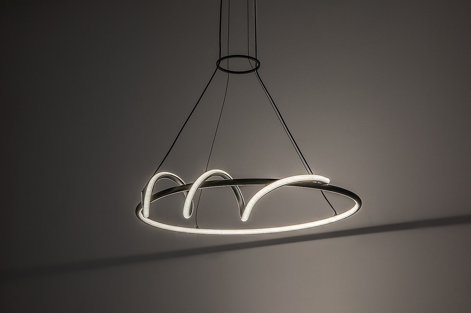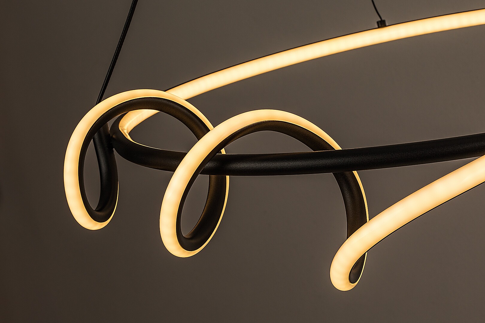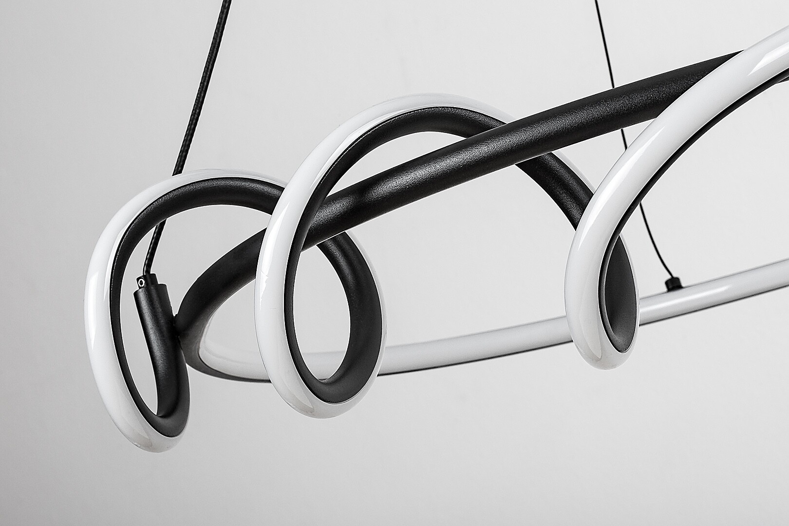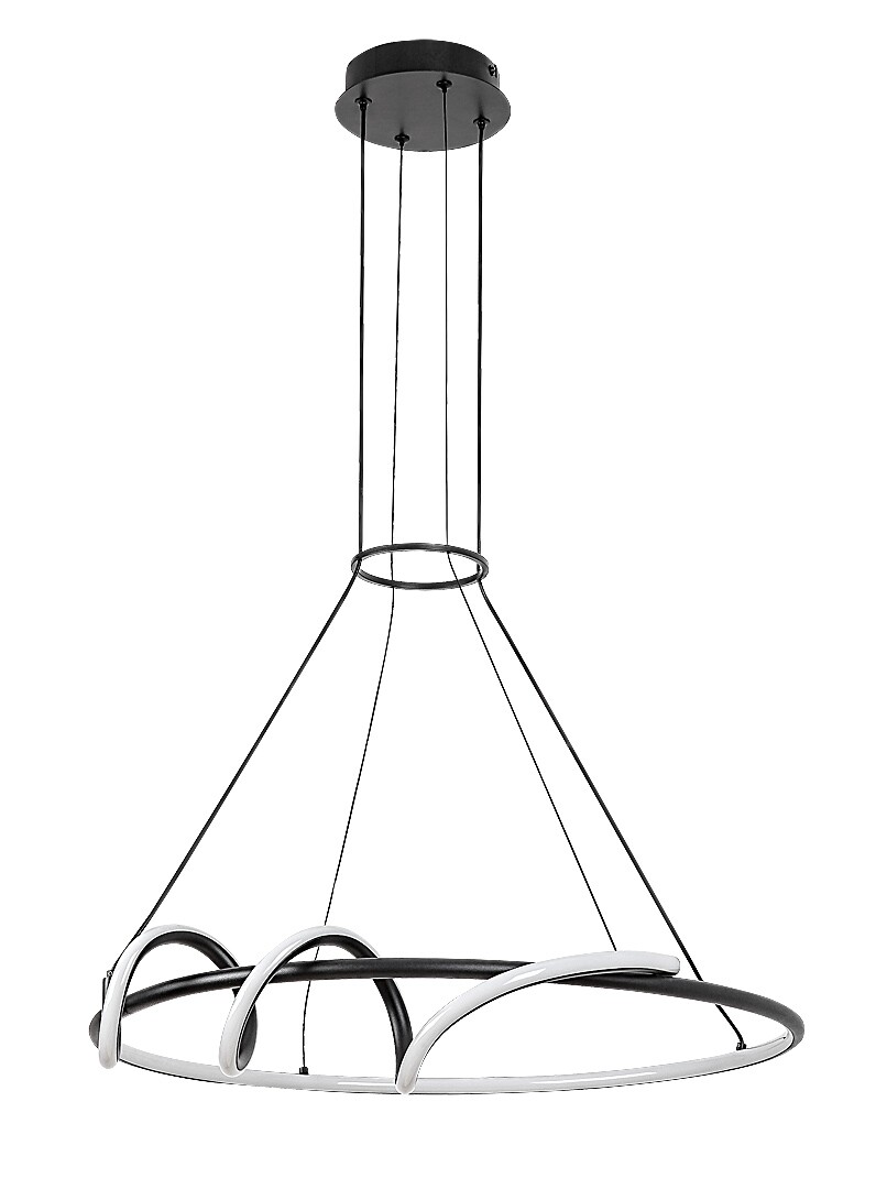 Rabalux Menazi pendant lamp is the ideal choice for those who do not want to sacrifice extensive functionality for creative design. This modern LED light comes in a stylish black and white colour combination, with a metal fixture, silicone lampshade and a small round decorative base. The design features a spiral-shaped decorative element running along one part of the circular fixture and a smaller ring-shaped element bundling the support cables. The hanging light has a built-in LED light source, the colour temperature of which can be changed by remote control or wall switch. The brightness, memory, timer and nightlight function can be adjusted by remote control. With its exceptional luminous intensity, the pendant is perfect for illuminating larger spaces. We recommend it primarily for the living room, bedroom or workroom.