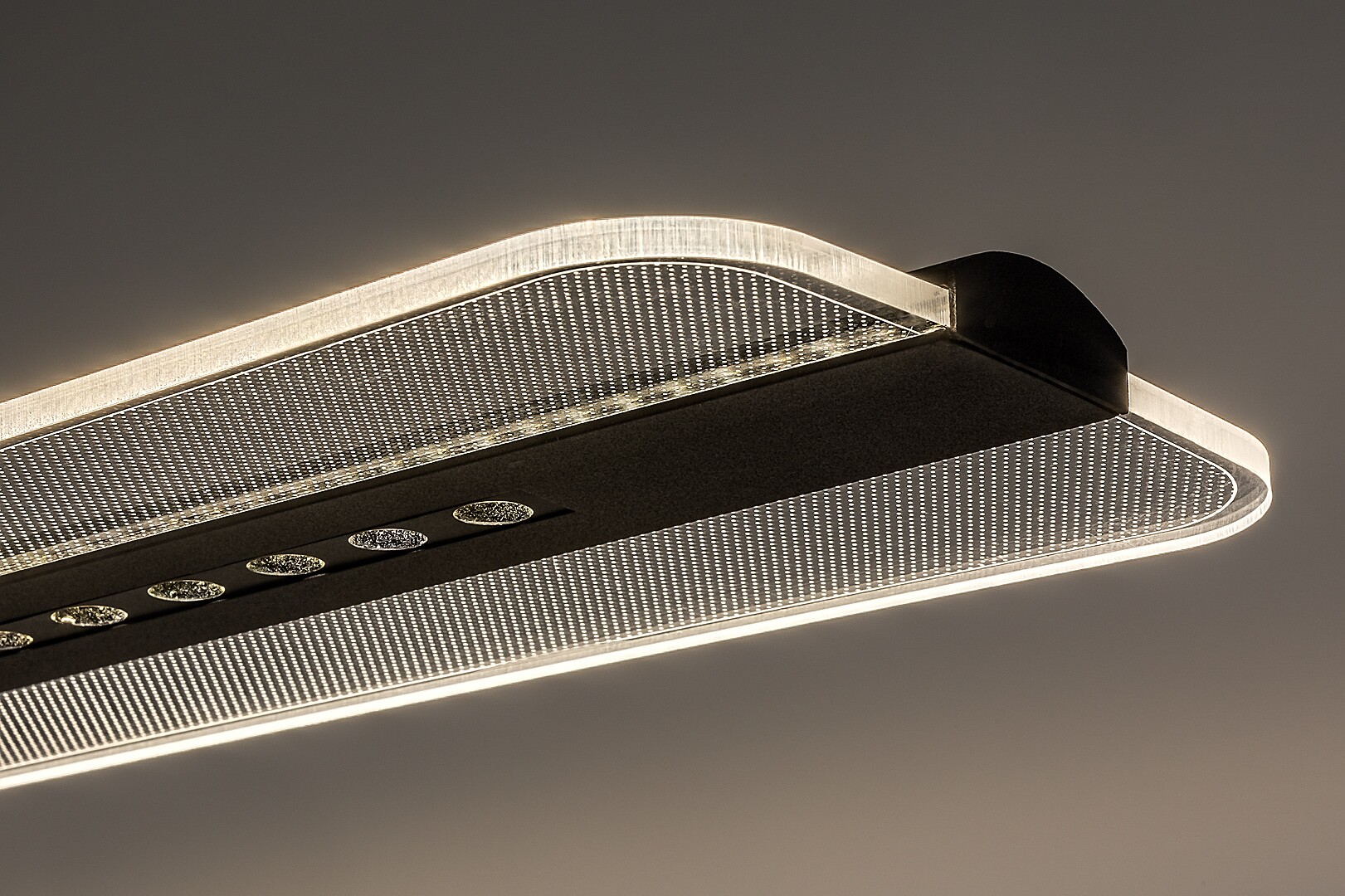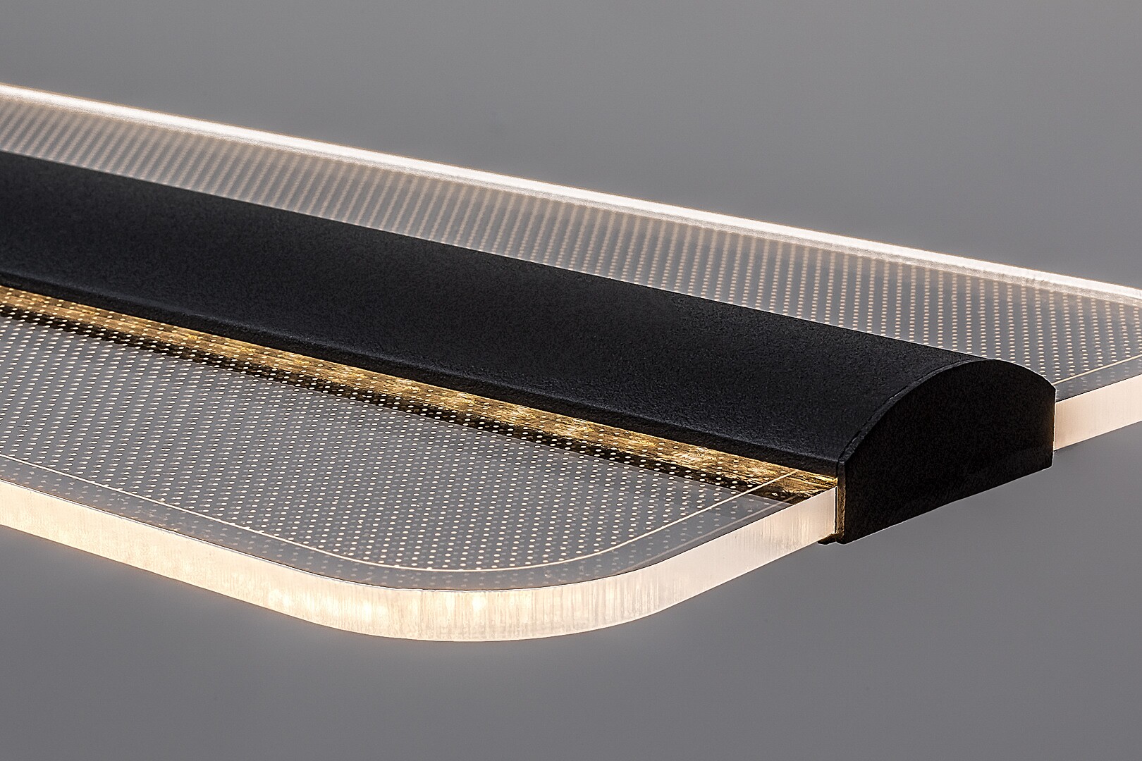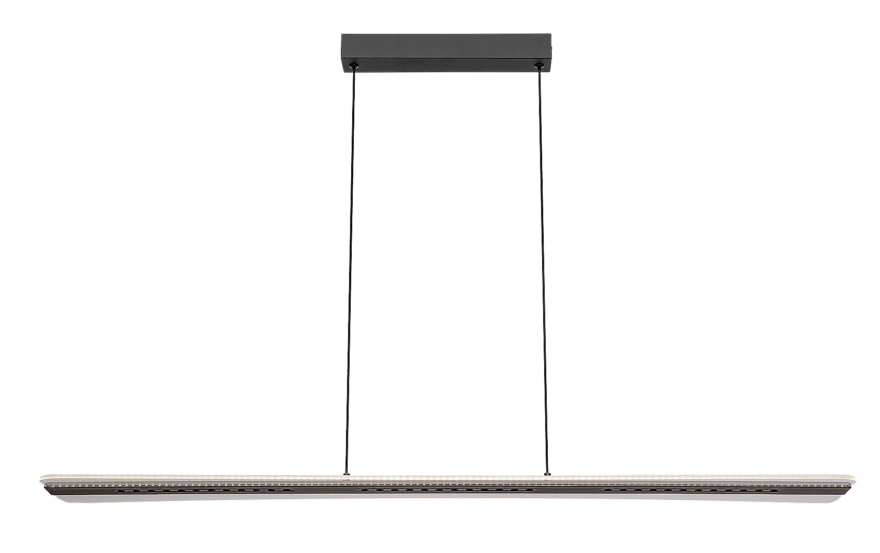 The Rabalux Norael pendant lamp is recommended for those who are looking for a large, high brightness lamp for a spacious room in their home. This modern hanging light is made of metal in black, and it is complemented by a transparent acrylic lampshade. The fixture consists of a single long element suspended horizontally, to which two support cables are attached. The pendant can be fixed to the ceiling using a black rectangular decorative base. It features a built-in LED lightsource that radiates a warm white light, helping to create a cosy, intimate atmosphere. The lightsource has an excellent colour rendering ability, which creates a natural effect and can also have a positive impact on our wellbeing. The hanging light is ideal for the living room, dining room or bedroom.