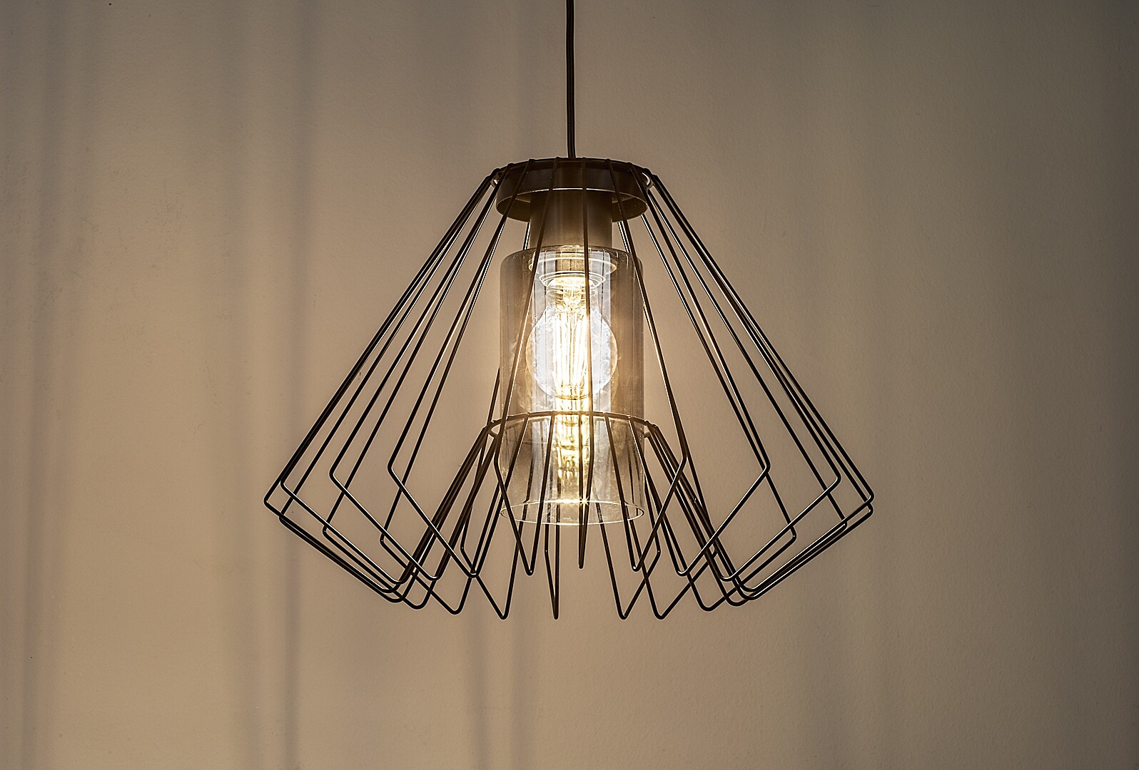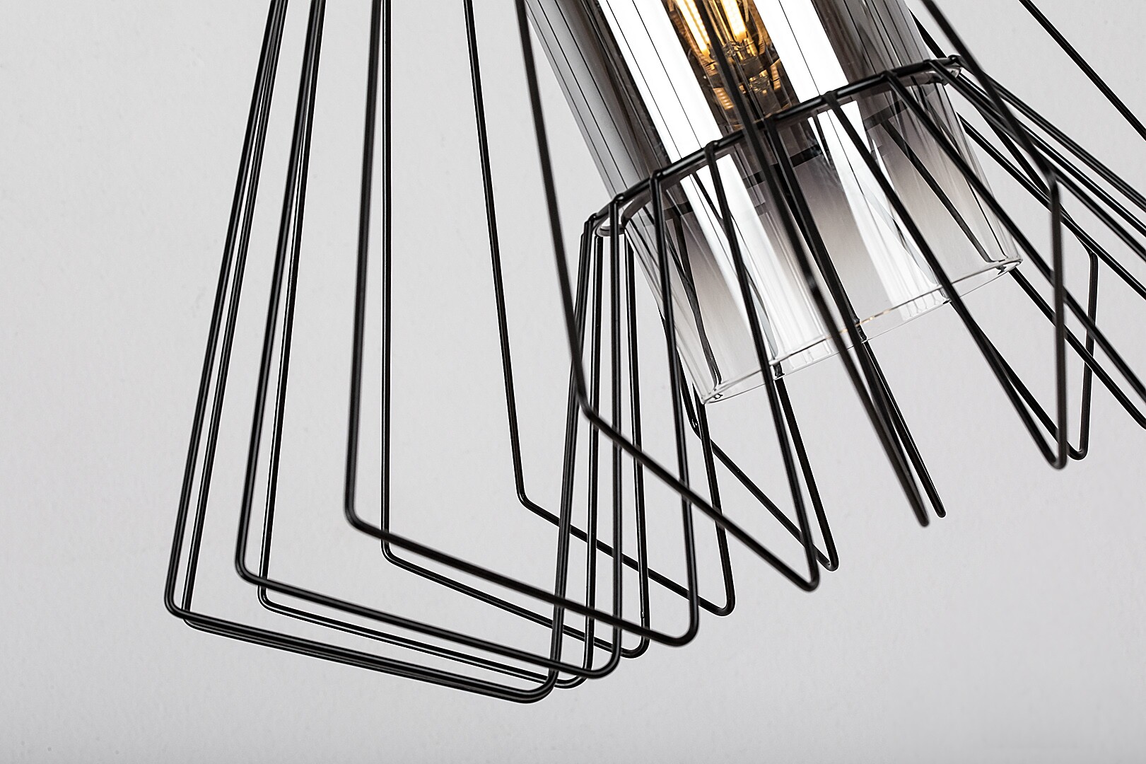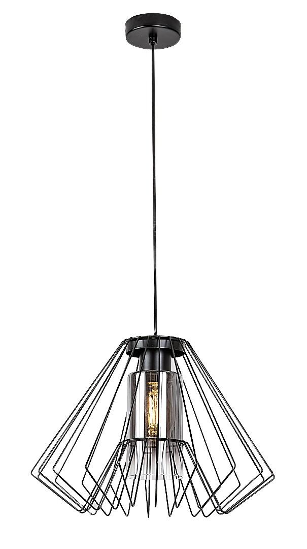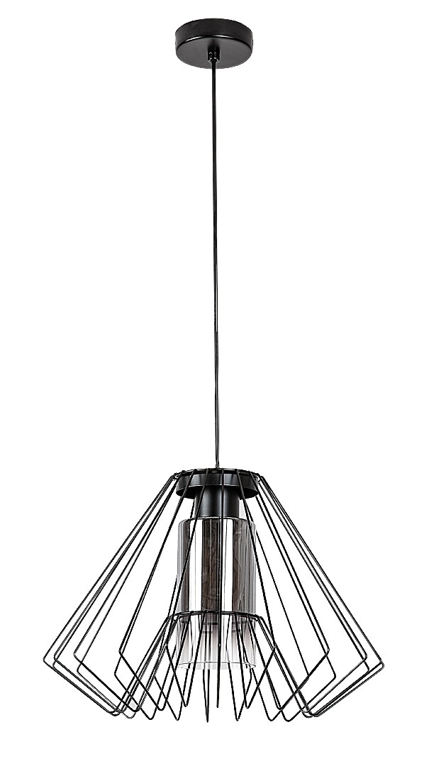 Rabalux Emerencia pendant lamp is recommended to those who like the industrial style. The special design model is made of metal in black. Inside the lamp there is a cylindrical smoky glass lampshade surrounded by an A-shaped barred external shade. The hanging lamp can be fixed to the ceiling by means of a small, round decorative base. It is the ideal choice for the living room, kitchen, dining room or bedroom. It can be used with a single light bulb with a power of up to 40 W. Socket type is E27. As the light source is clearly visible through the lampshade, it is a good idea to use the pendant with an aesthetically pleasing bulb with an unconventional shape. Depending on your taste and the room where you wish to install the lamp, you can choose a bulb radiating a warm or natural white light. The pendant lamp is supplied without a light source.