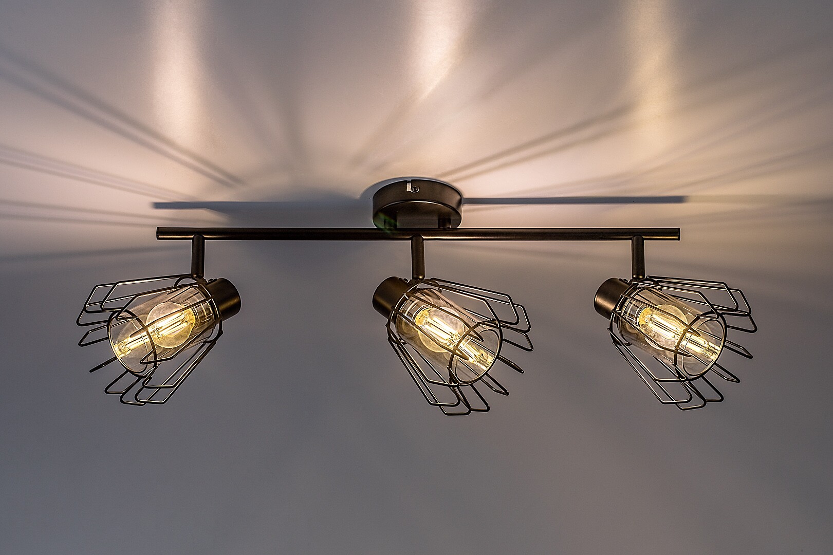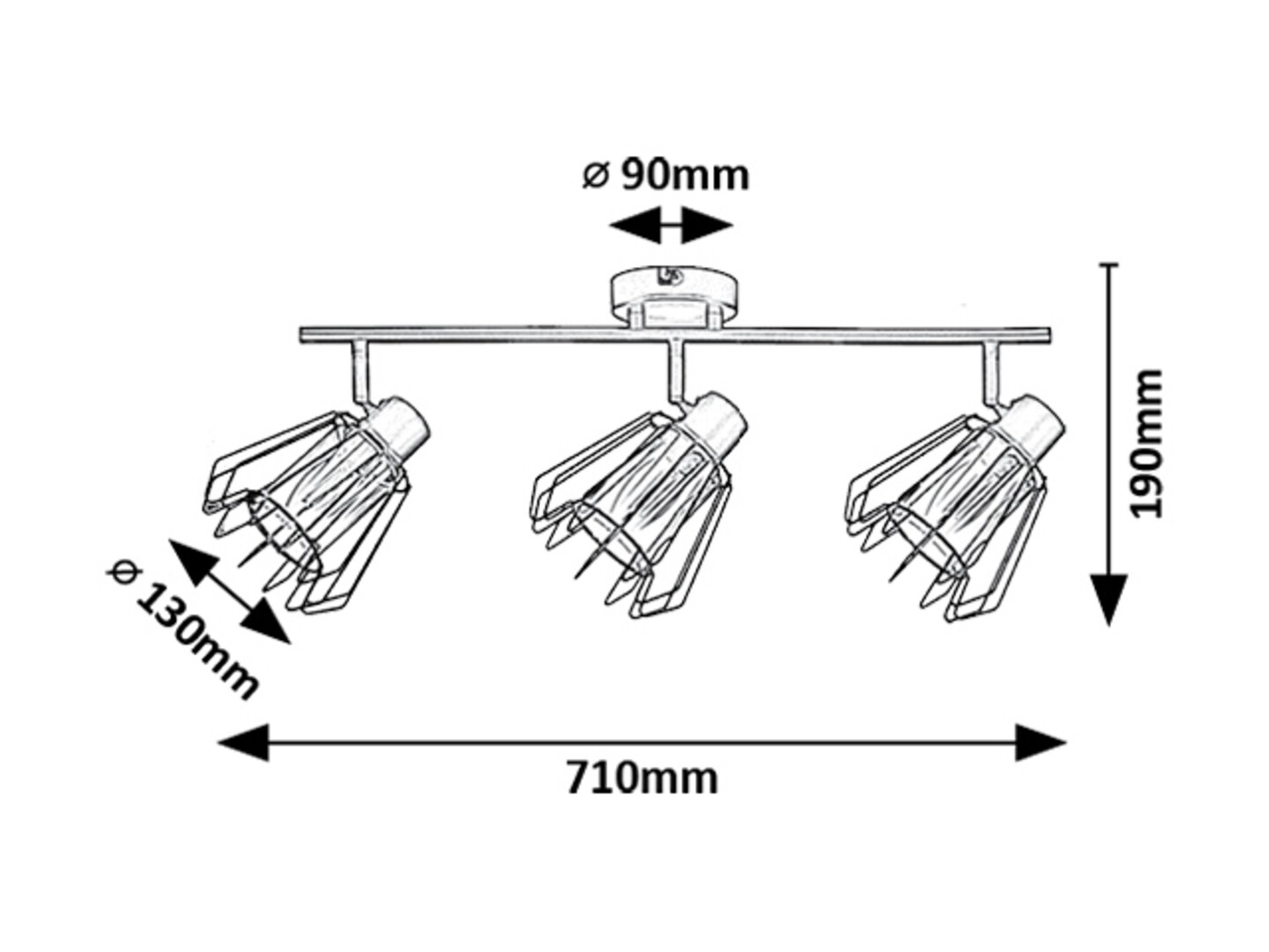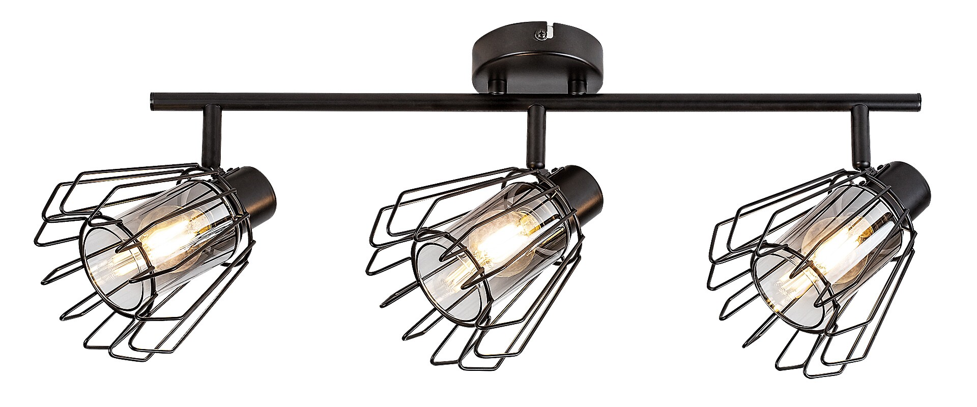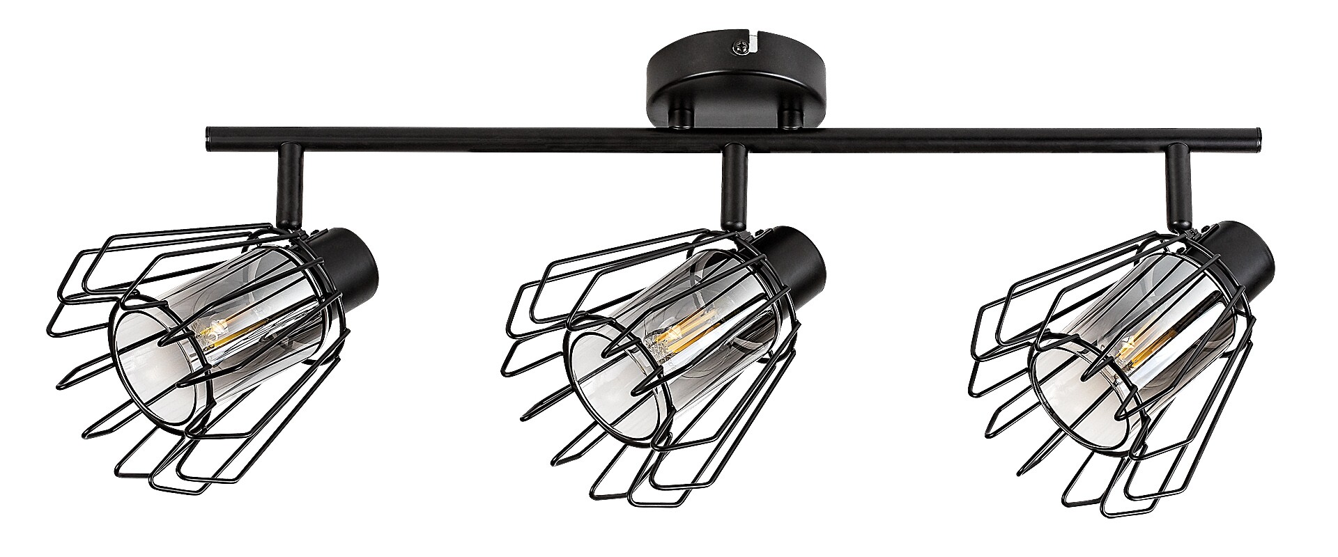 Rabalux Emerencia 3-bulb ceiling spotlight is recommended to those who like unique-looking lamps in an industrial style. This model features barred lampshades and is made of metal in black. Inside the lamp heads are cylindrical, smoky glass lampshades, surrounded by A-line barred external shades. The spot lamp can be fixed to the ceiling by means of a small round decorative base, to which a cylindrical rod is attached that holds the lamp heads. The ceiling light is an ideal choice for the living room, kitchen, dining room or bedroom. It can be used with three light bulbs, each with a power of up to 40 W. Socket type is E14. The spot lamp is made with practical, flexible lamp heads, which allows you to effectively illuminate the room. It is supplied without light sources.