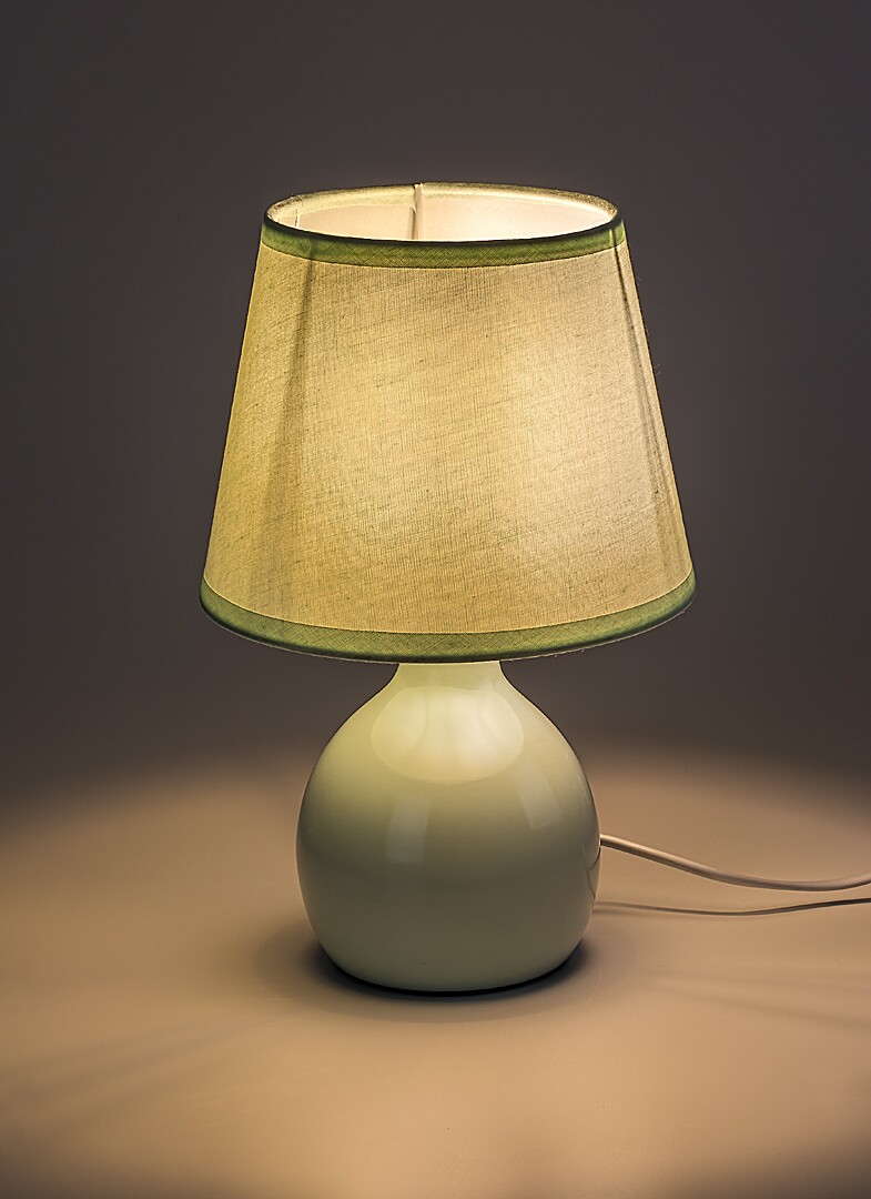 The Rabalux Ingrid table lamp is recommended for those who are looking for a universal complementary lamp that can be integrated into a wide range of room interiors. This restrained model is ideal for the bedroom, workroom or living room: it can be placed on a table or on the nightstand. The fixture is made of pale green ceramic, while the shade is composed of textile of the same colour. The lampshade slightly widens downwards and is open at the top and bottom. Thanks to its bright colour, it transmits a relatively high amount of light, making the lamp suitable for work use. It can be operated with a single light bulb with a power of up to 40 W. Socket type is E14. The night-light can be operated by a cable switch. It is supplied without a lightsource.