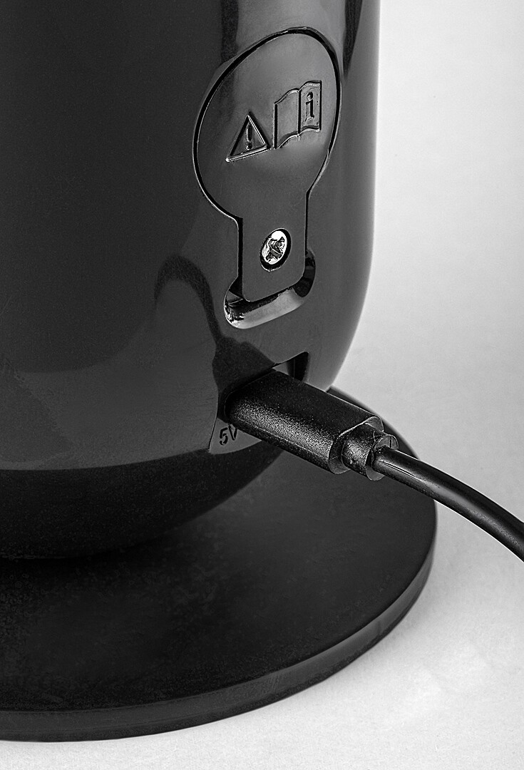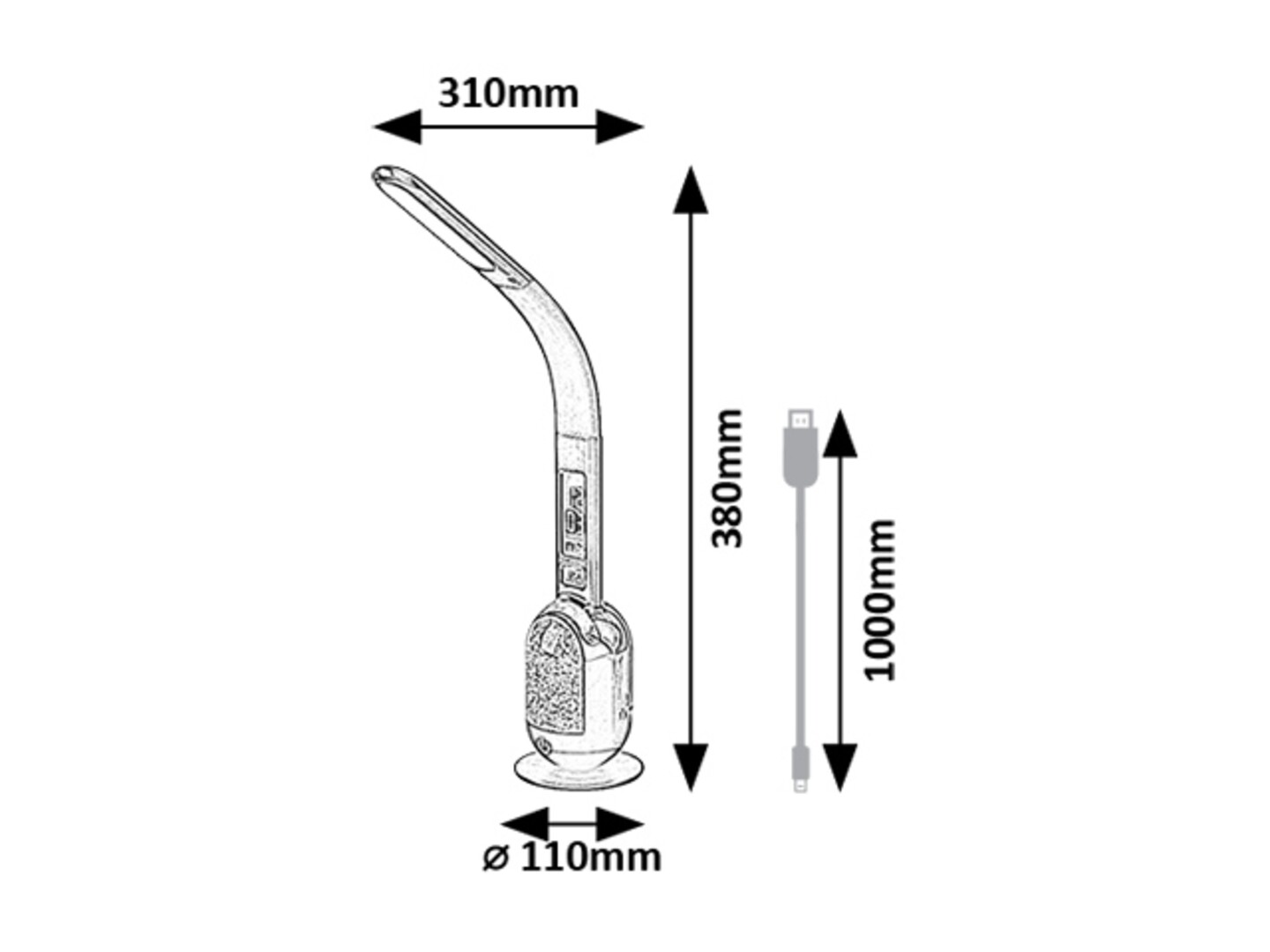 Rabalux Figen table light is recommended to those who appreciate decorative appearance as well as extensive functionality. This modern lamp is made of plastic, with a black fixture and a white lampshade, with a disc-shaped decorative base. The arm is thin and flat with two displays on the lower part. The rotund part of the fixture in contact with the decorative base is filled with a flowable micaceous material - this part can be switched separately. The lamp is capable of RGB lighting, which allows the micaceous fill to shine in a wide variety of colours. The design lamp has a built-in LED light source that radiates a natural white light and also includes a battery. The luminous intensity can be adjusted by a touch switch on the lower part of the lamp. The table lamp is the ideal choice for the living room, bedroom or workroom.