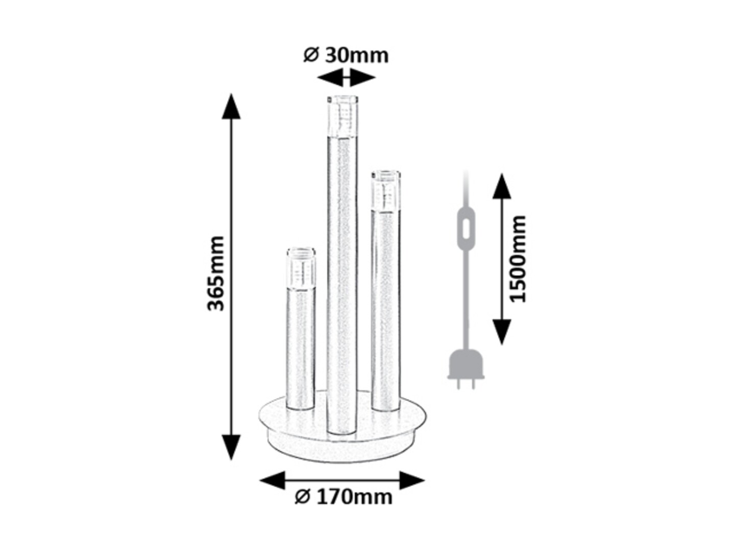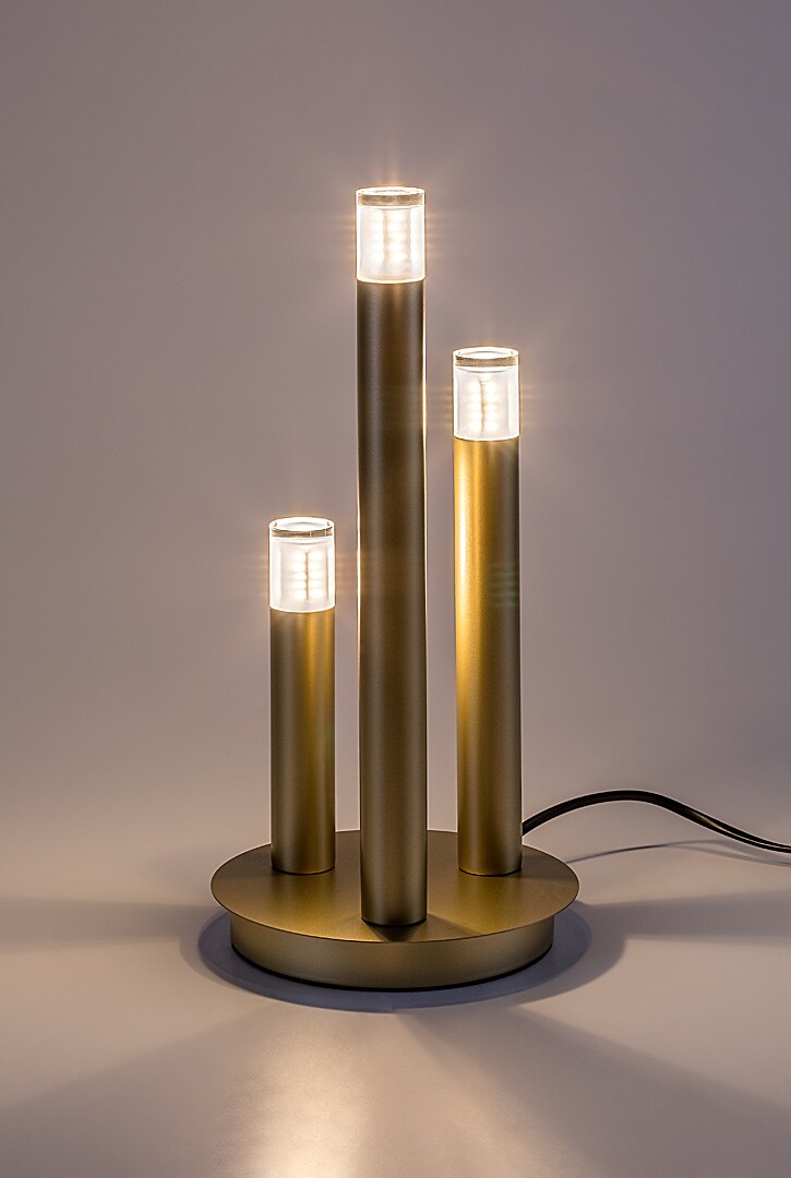 Rabalux Ramira table lamp is the ideal choice for those who prefer unique design and universal, easy-to-move models. The lamp is made of metal in elegant gold, with transparent acrylic lampshades on the top of the lamp heads. The decorative base is round in shape, with three cylindrical lamp elements of different heights, reminiscent of candles. The design table lamp can be placed in a variety of rooms in your modern home: it can be a stylish addition to the living room, kitchen, dining room or bedroom. It can be operated by cable switch and used with three light sources, each with a power of up to 5 W. Socket type is G9. You can choose light bulbs emitting a warm or natural white light. It is supplied without light sources.